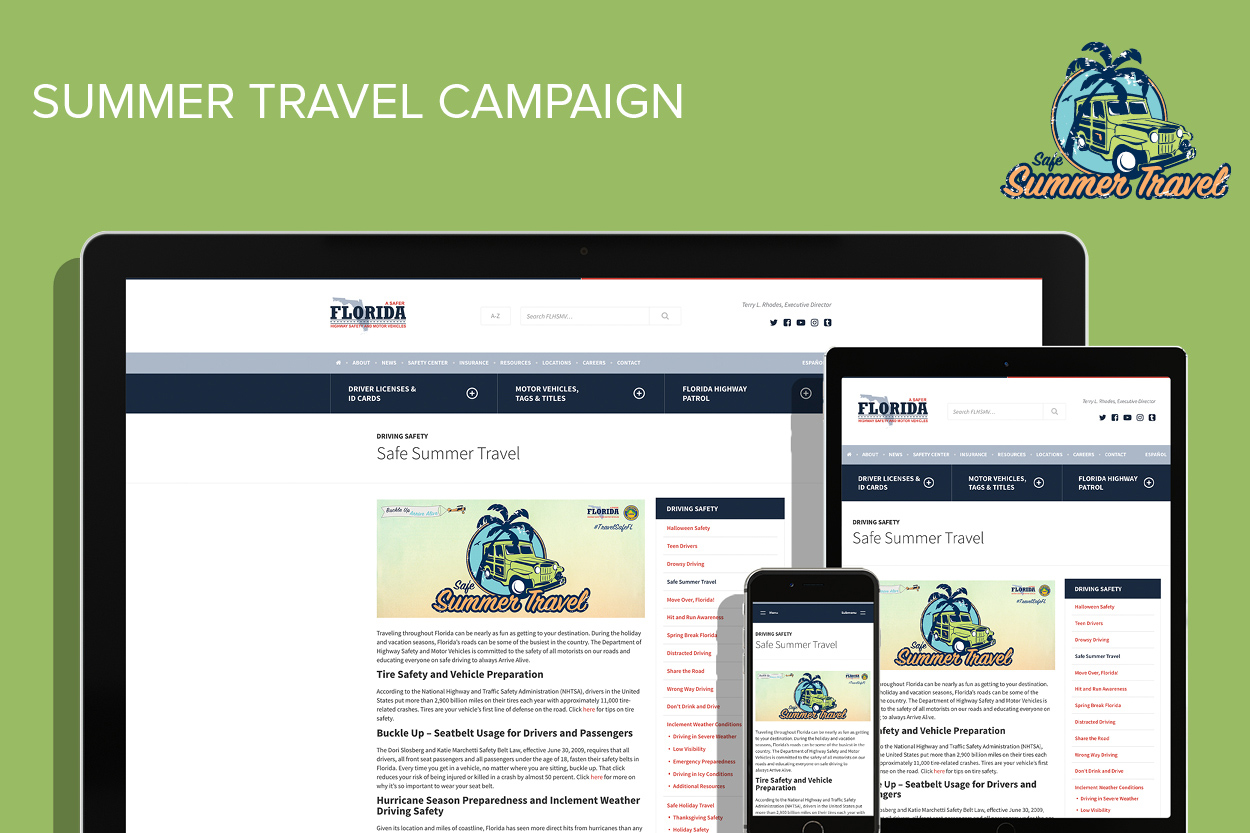 The Florida Department of Highway Safety and Motor Vehicles’ (DHSMV) Division of the Florida Highway Patrol (FHP) is charged with providing highway safety throughout the state. DHSMV is the state agency responsible for collecting, maintaining and reporting on Florida’s official crash, traffic citation and driver & vehicle data. In collaboration with its various partners, the FHP leads and implements the state’s traffic safety and education initiatives through participation in numerous national and state education and enforcement campaigns.